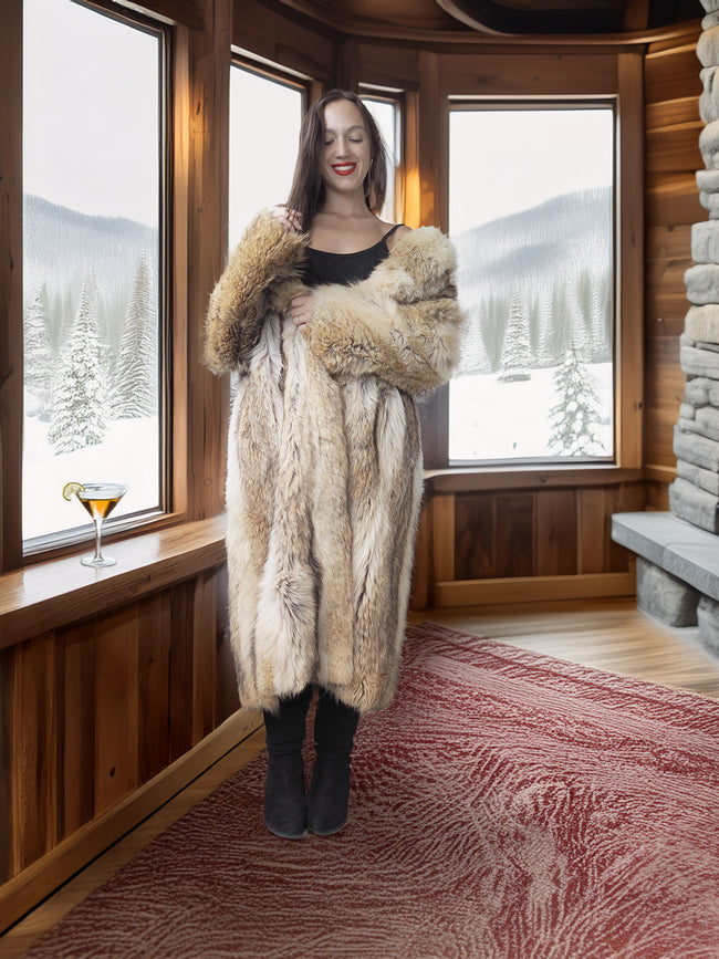 "Wild Luxe"- Coyote Fur Coat with Shawl Collar – Alpine Edition