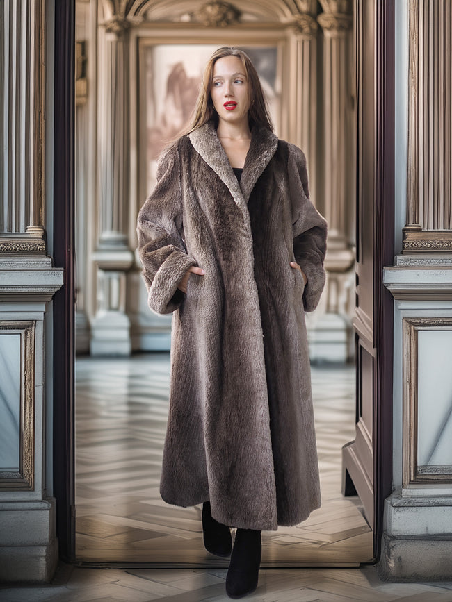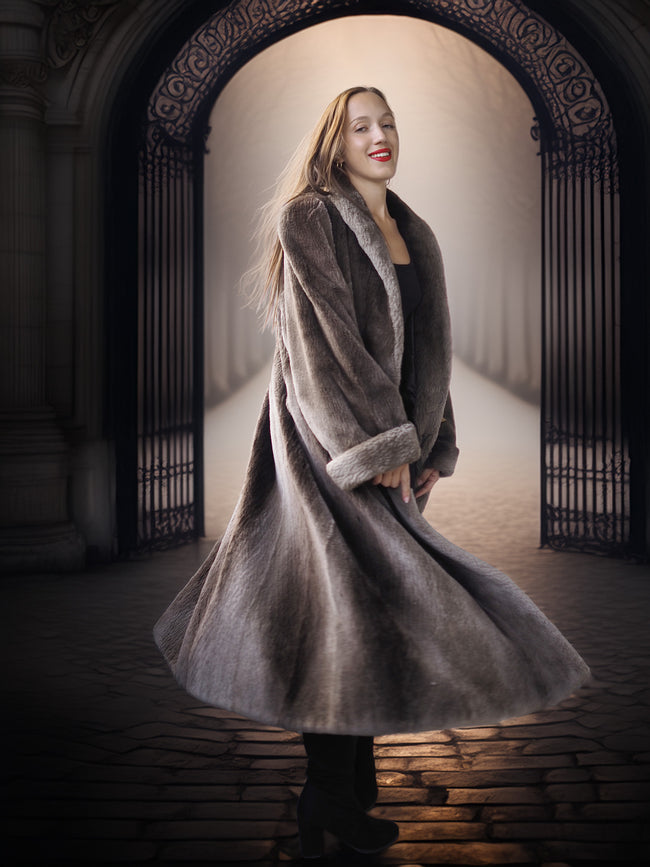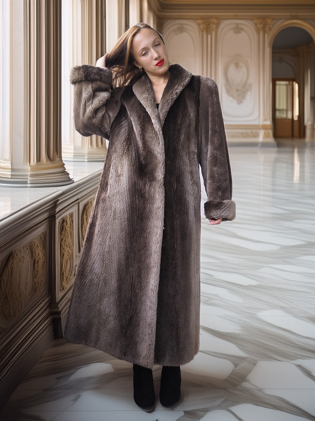 "Phantom Shadows" – Sheared Beaver Full-Length Coat with Fold-Back Cuffs